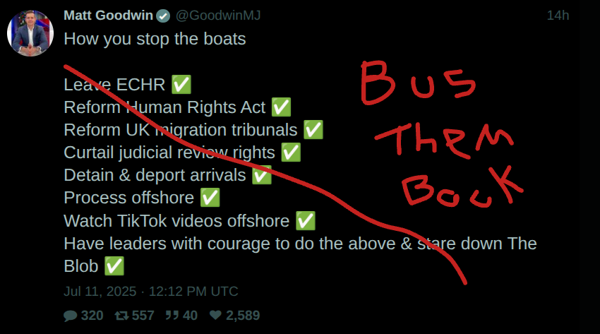 Ultimately, immigration enforcement is like "stopping the boats". It does nothing about pull factors. Arrest some workers, fine some cash-in-hand businesses, maybe even jail the occasional director, if we can find the room. The shadow economy rolls on.