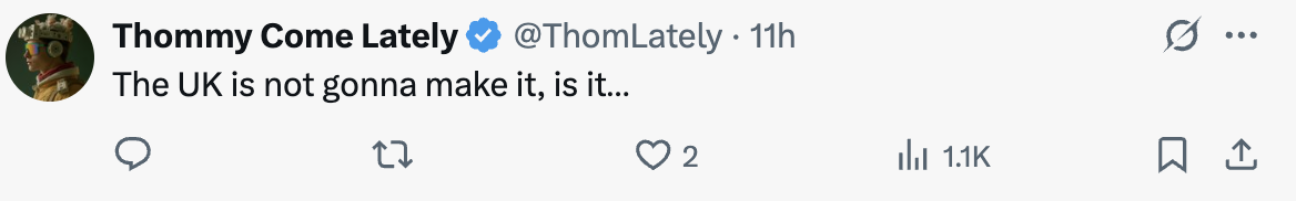 I fucking despair of the amateurism now invading every single area of our lives. The entire edifice known as the UK economy is imploding faster than even I thought possible. We can all see why!