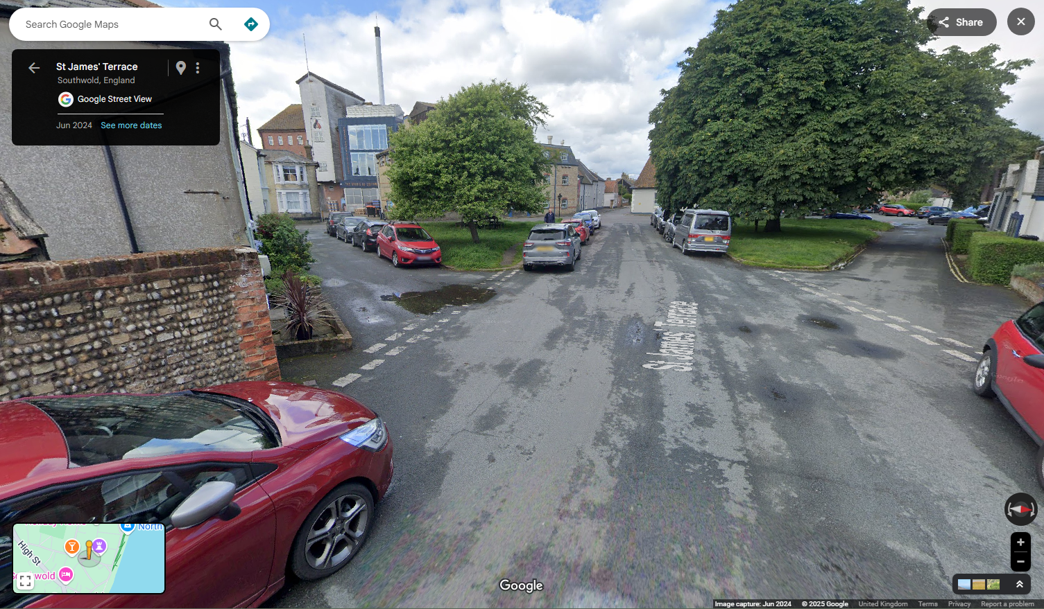 I went to Southwold in 1994. The best view in the town was from the tables in front of the Sole Bay Inn westwards towards Adnams Brewery. Sadly, it's now blocked by a tree.