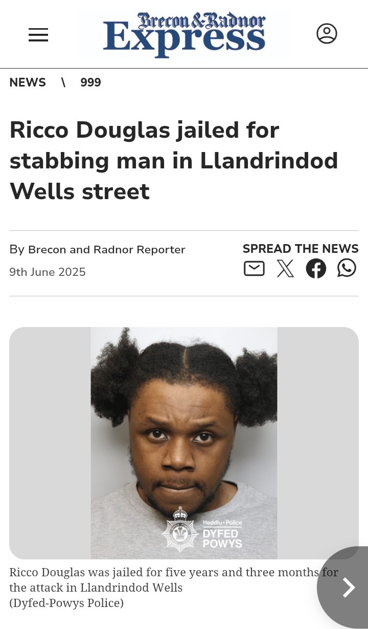 1. Ricco Douglas, 25, of The Bungalow, Birmingham Wildlife Conservation Park, attacked his victim shortly after arriving in the town on December 14, 2024.