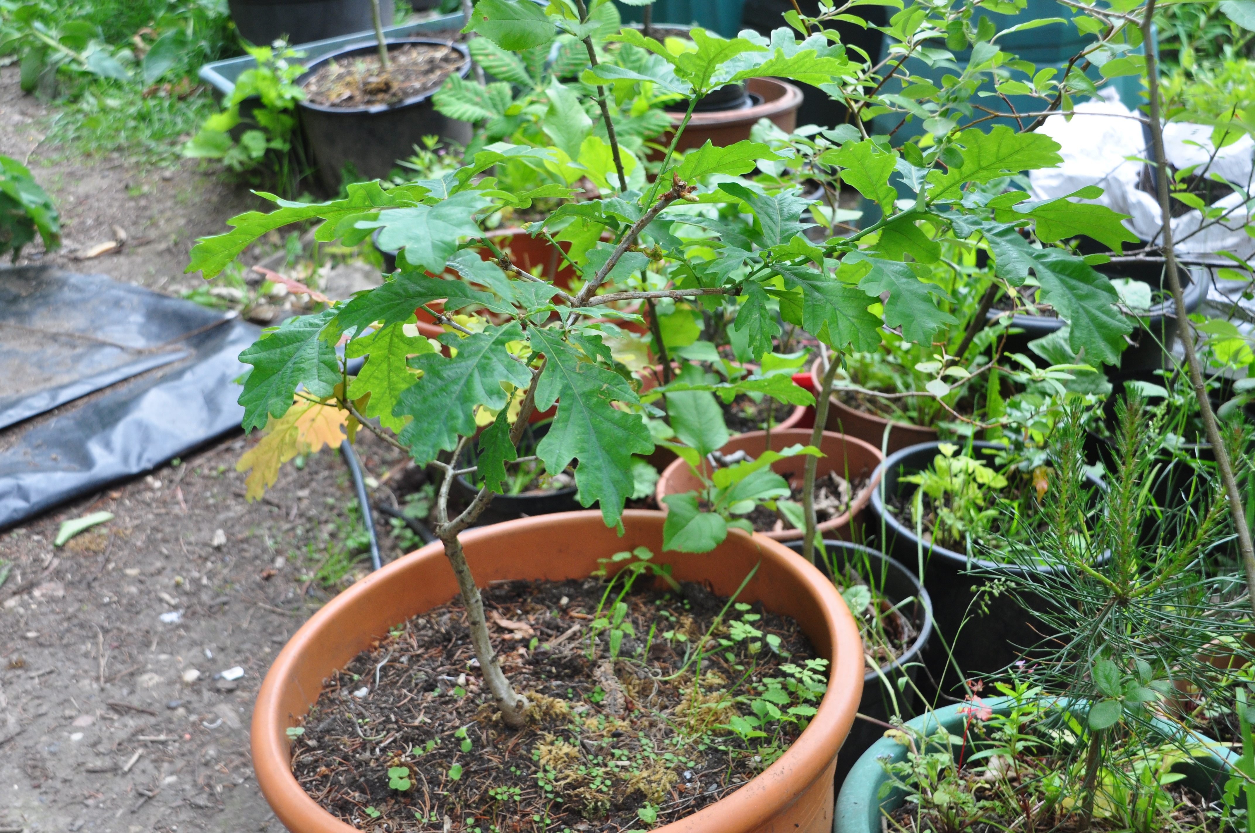 This is one of three oak seedlings I have. I think it grew from an acorn I picked up on a walk to Mow Cop some years ago; https://uploads.disquscdn.com/images/28889a1991d0caf1e9e4d027220bd1164de63e3ff2391a1cf2c5454080e4a1ff.jpg This is a sweet chestnut that has, over the years, been dried out almost to the point of extinction yet has still come back. I can't recall if it's from a chestnut I picked up at Ashford 6 or 7y ago, or from a Christmas nut that escaped being roasted. I did have 5 or 6 plus a few walnuts, but they have been passed out to a couple of the big gardens in the village. https://uploads.disquscdn.com/images/88953f87fbaa39de246b50b5cab52f2685a6ed4493101193fdfe1a34c130f2c1.jpg A Scots pine seedling from a cone I picked up just on the edge of Crewe https://uploads.disquscdn.com/images/3640ad39bb535fb7248b0f956b6e8ff307e62c586c5b0ec8920db5d08c6812ab.jpg Blending in a bit too much with the grass behind it, is this rather nice beech https://uploads.disquscdn.com/images/f1bb1bc4f1e38ccdda77849cb558b832598ba315614246f09a7c405933cc8f48.jpg And a tiny oak https://uploads.disquscdn.com/images/b4e73b92639d2d53f58aa4e3cad06146220663482f2e6e3b291ab4c42fbe365b.jpg With a more substantial oak beside it. One of the three oaks might be from an American variety of oak that was in the Railway Tech Centre in Derby that blew over in a storm and smashed a couple of the office windows!