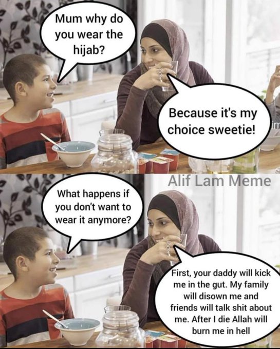 1. "So, tell me young ladies, how do you feel about your brother being able to dress as he is, while you're covered up as if you're so ugly that you should be hidden from the world?"