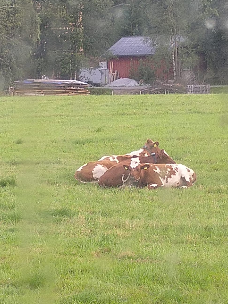View from Firstborn's kitchen… beautiful heifers, happily munching.