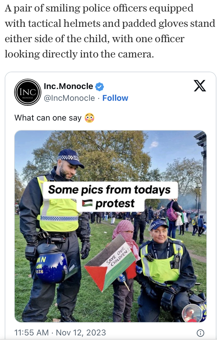 Hmm 300+ arrests at the Pally demo for words and placards