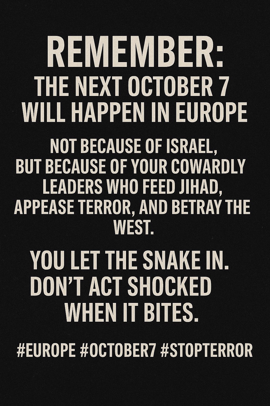 Well, the West I grew up in and knew has never been on the side of demented terrorists, rapists and genocidal racists, with a primordial desire to exterminate the Jewish people.