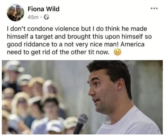 The cretinous Muslim, like others of his ilk, is saying that Charlie Kirk brought it on himself. These idolatrous idiots are repulsive and inhumane.