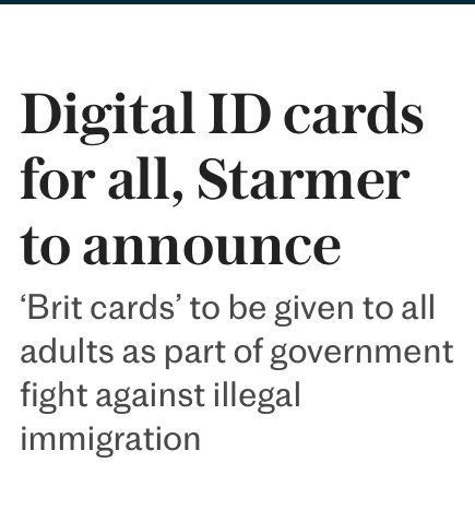But if digital ids are brought in, will Farage repeal them if Reform wins the election? If I believed that would happen (which right now I don't), I would vote Reform.
