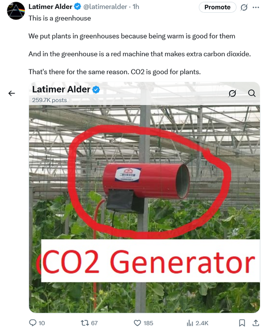 1. And they keep having to top up the CO2 as it's taken up by the plants and turned into, amongst other things, cellulose. Thus, reducing the atmosphere CO2 level. When the CO2 level goes down, the plants slow down – a perfect self-regulating process.
