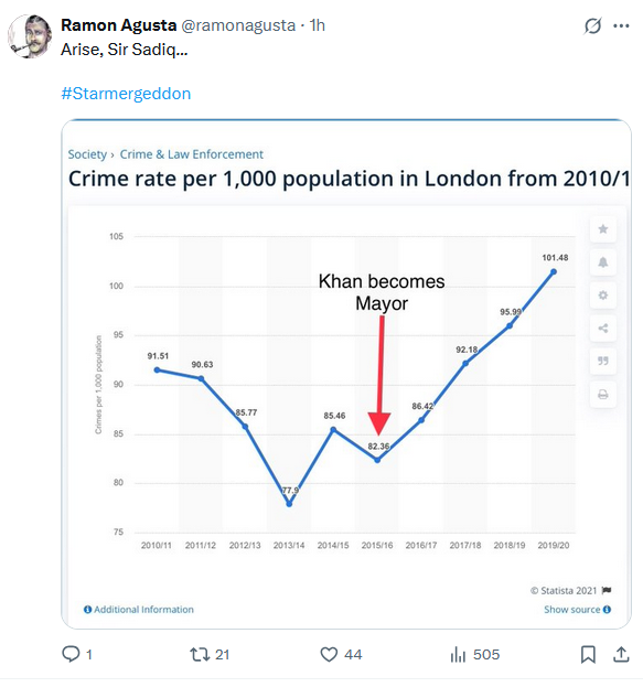 Keeping our streets safe should be at the very heart of political and public service. Khan has failed spectacularly at this basic task. The honours system all too often rewards mediocrity in public office. Khan is just one of many eyebrow-raising choices we have seen in recent decades.