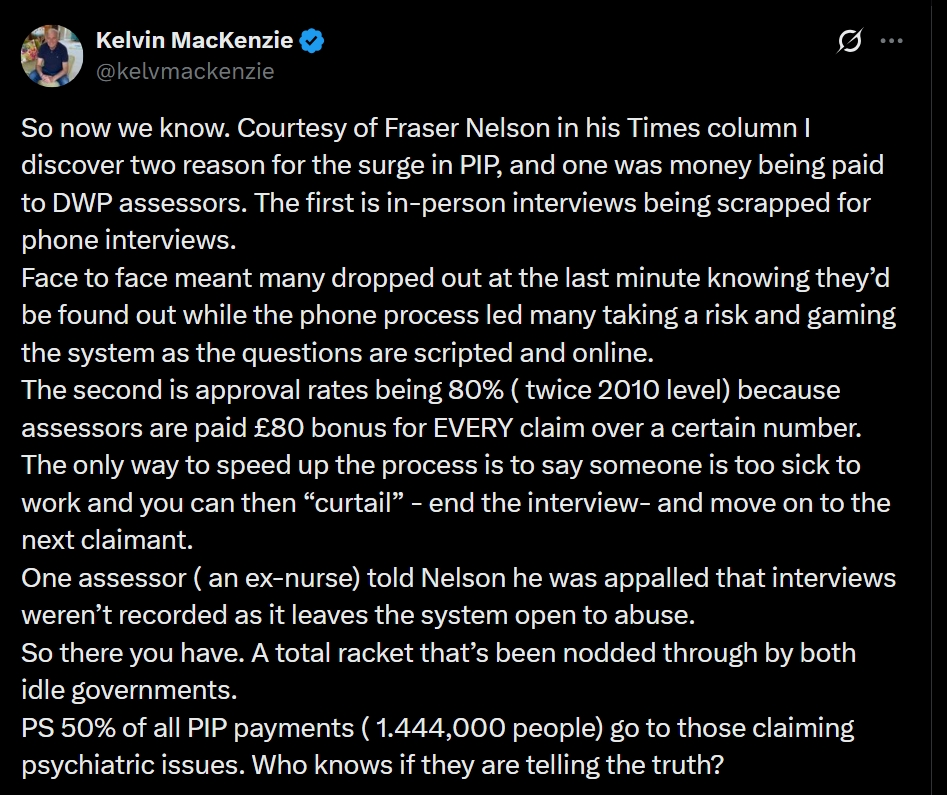 2. And, of course, my Stepson, who is genuinely unable to work due to his mental health issues, had his PIP stopped during his last prolonged stay in hospital and when he tried to have it reinstated was refused.