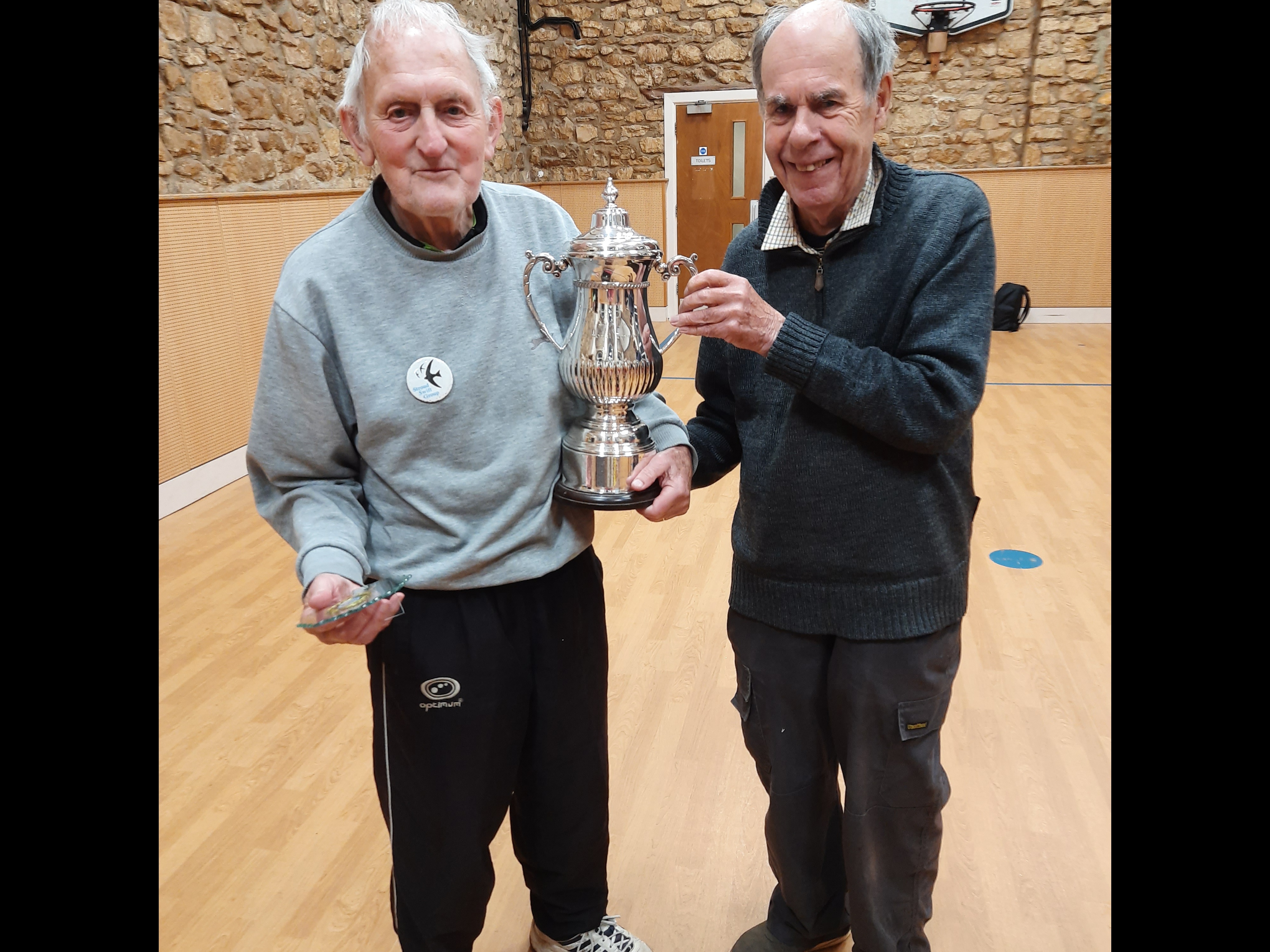 There’s a story behind that – it’s a memorial trophy for an old member of the club who died in 1998. He actually died in that very hall during a match. He played his winning shot and dropped dead from a heart attack. His only relative was a distant cousin and she donated the money for a club trophy. So we have a club tournament each year to play for it.