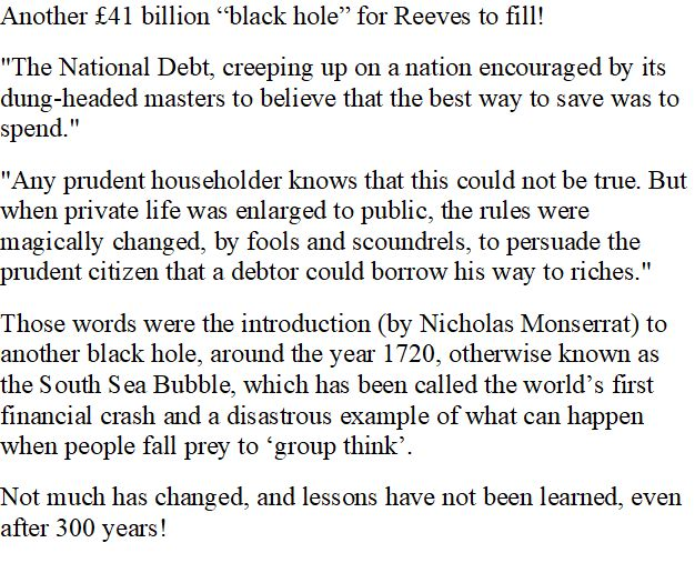 Reeves claimed at the last budget that she had solved the problem of the Tories £22bn black hole so this new £41bn black hole must be of her own making.